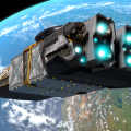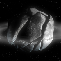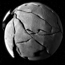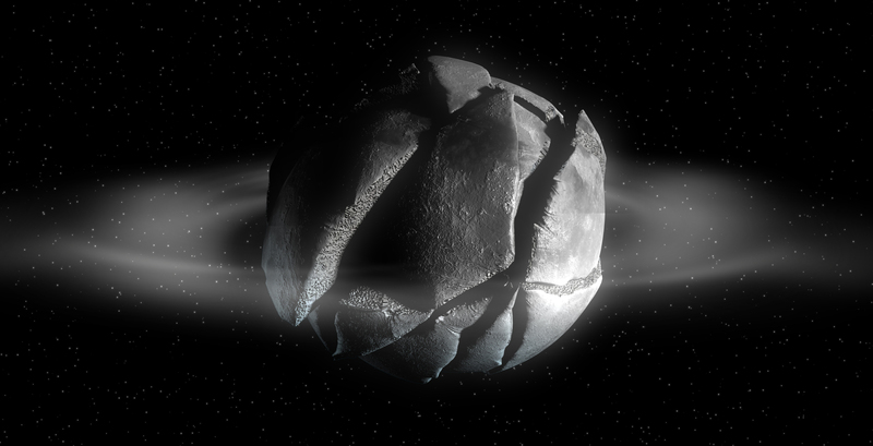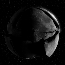 flat but has an intersting look. I really like the shattered moon there. That's big in Sci-Fi now, but it's aways depicted wrong. Unless the moon is vaporised on impact, it'd